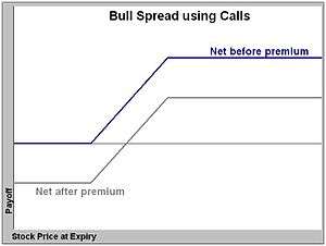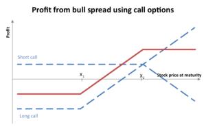 In options trading, a bull spread is a bullish, vertical spread options strategy that is designed to profit from a moderate rise in the price of the underlying security.