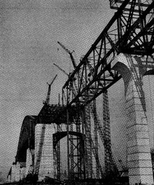 When traffic volume became more than the bridge could accommodate in the early 1980s, the bridge was twinned. When the new skyway (concrete structure) was opened on October 11, 1985,[2] traffic was temporarily rerouted to it so that the old bridge could be extensively rehabilitated and this work was completed August 22, 1988.[2] Afterwards, there were eight lanes of traffic crossing the harbour.