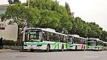 Liverys of different bus companies differ. The most ordinary livery is often called "SH Livery", which was established in 2001. Bashi Group buses, Jinshan Bus Co. of Jinshan District, Minhang Bus Co. of Minhang District and other private bus companies use such kind of livery, while different in colors. Pudong Bus of Pudong District has its special livery established in 2009, which is blue and is often called "Haibao Livery". Songjiang Bus of Songjiang District has a livery of a combination of red and grey, which was established in 2007. Fengxian Bus of Fengxian District has a livery of green and white and another livery based on "SH Livery" but with the color of green and blue, which were established after Fengxian Bashi and Fengxian Bus (local owned).Qingpu Bus of Qingpu District started using new livery since the end of 2015, which contains the same color with Bashi "SH Livery" but has different patterns. Zongshen Dazhong of Qingpu District has a special livery of a combination of yellow and green on some of its bus routes.