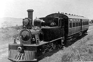 To avoid further delay with the implementing of the new railmotor service, it was decided to construct a railmotor engine at the Pretoria Works, consisting of a light 19 Tonner 0-4-2T tank locomotive and a 52-seat side-door 3rd Class suburban coach. The locomotive was modified and semi-permanently coupled to the coach, which was modified to contain a driving cab at the rear end, with the controls arranged so that the push-pull unit could be driven from either vehicle. The locomotive was reclassified as a Railmotor Engine and renumbered M1. The CSAR railmotor service was put into operation in April 1906 and operated between Rissik in Johannesburg and Wonderboom in Pretoria.[1][2][3][4]