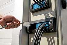 Cable entry systems are used for routing cables, corrugated conduits or pneumatic hoses into switch cabinets, electrical enclosures and machines or in large heavy-duty vehicles, rolling stock and ships. Possible requirements can be high ingress protection rates[1] or integrated strain relief.[2]