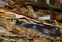 The collared reed snake (Calamaria pavimentata) is a species of colubrid snake found in Asia. In Japan, it is also called Miyara's collared snake.
