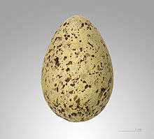 The red knot nests on the ground, near water, and usually inland. The nest is a shallow scrape lined with leaves, lichens and moss.[12] Males construct three to five nest scrapes in their territories prior to the arrival of the females. The female lays three or more usually four eggs, apparently laid over the course of six days. The eggs measure 43 mm × 30 mm (1.7 in × 1.2 in) in size and are ground coloured, light olive to deep olive buff, with a slight gloss. Both parents incubate the eggs, sharing the duties equally. The off duty parent forages in flocks with others of the same species. The incubation period lasting around 22 days. At early stages of incubation the adults are easily flushed from the nest by the presence of humans near the nest, and may not return for several hours after being flushed. However, in later stages of incubation they will stay fast on the eggs. Hatching of the clutch is usually synchronised. The chicks are precocial at hatching, covered in downy cryptic feathers. The chicks and the parents move away from the nest within a day of hatching and begin foraging with their parents. The female leaves before the young fledge while the males stay on. After the young have fledged, the male begins his migration south and the young make their first migration on their own.[19]