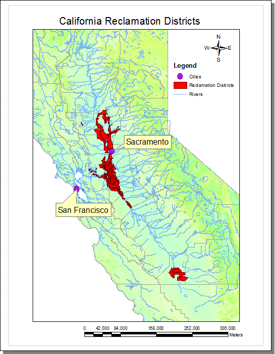California Reclamation Districts are legal subdivisions within California's Central Valley that are responsible for managing and maintaining the levees, fresh water channels, or sloughs (pronounced slü),[1] canals, pumps, and other flood protection structures in the area. Each is run autonomously and is run by an elected board and funded with taxes to property owners in the local area. However, the Central Valley Flood Protection Board[2] has the power to determine that a district is not satisfactorily maintaining the structures and causing the California Department of Water Resources [3] to declare an area as a maintenance area.