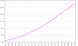 According to the 2010 revision of the World Population Prospects the total population was 19 599 000 in 2010, compared to only 4 466 000 in 1950. The proportion of children below the age of 15 in 2010 was 40.6%, 55.9% was between 15 and 65 years of age, while 3.5% was 65 years or older .[2]