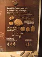 Archaeological investigations have concluded that Canfield Island was inhabited during the Late Archaic period (approximately 3,000 years BP)[1]:3[5] and a fragment found at the lowest point of investigation, while it cannot be dated conclusively, may have originated in the Early Archaic period. Various phases of the Woodland period appear at the site, and evidence exists of occupation by the Susquehannock,[1]:3 who still inhabited eastern Pennsylvania after the arrival of Europeans in the region.[6]