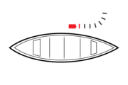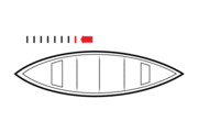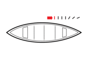 The draw stroke exerts a force opposite to that of the pry. The paddle is inserted vertically in the water at arm's length from the gunwale, with the power face toward the canoe, and is then pulled inward to the paddler's hip. A draw can be applied while moving to create a running or hanging draw. For maximum efficiency, if multiple draw strokes are required, the paddle can be turned 90° and sliced through the water away from the boat between strokes. This prevents the paddler from having to lift the paddle out of the water and replace it for each stroke. |