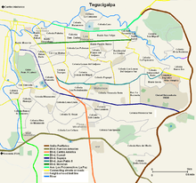 Tegucigalpa's infrastructure has not kept up with its population growth.[31] Deficient urban planning,[32] densely condensed urbanization, and poverty[33] are ongoing problems.[34] Heavily congested roadways where current road infrastructure is unable to efficiently handle over 400,000 vehicles create havoc on a daily basis.[35] Both current national and local governments have taken steps to improve and expand infrastructure as well as to reduce poverty in the city.[36][37]