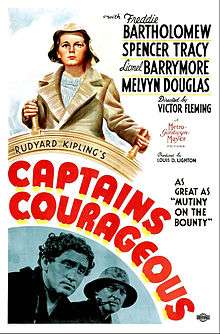 Captains Courageous is a 1937 Metro-Goldwyn-Mayer adventure film. Based on the novel by Rudyard Kipling, it had its world premiere at the Carthay Circle Theatre in Los Angeles. The movie was produced by Louis D. Lighton and directed by Victor Fleming. Filmed in black-and-white, Captains Courageous was advertised by MGM as a coming-of-age classic with exciting action sequences.