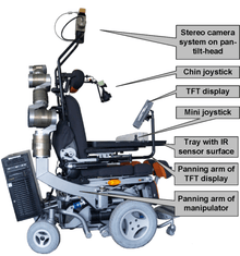 - Input devices: There are several input devices which are available for FRIEND or under development: chin joystick, hand joystick, speech control (in- and output), brain-computer interface (BCI) and eye control. The input devices are adapted according to the impairments of the user or his preferences.