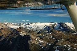 The Cariboo Mountains are the northernmost subrange of the Columbia Mountains, which run down into the Spokane, Washington area of the United States and include the Selkirks, Monashees and Purcells. The Cariboo Mountains are entirely within the province of British Columbia, Canada. The range is 7,700 km² (c. 2,975 sq mi) in area and about 245 km in length (SE-NW) and about 90 km at its widest (SW-NE).