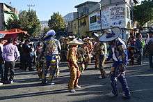 Carnival celebrations in the state of Morelos are generally family-oriented affairs.[34] The best known Carnival in the state of Morelos is in Tlayacapan, noted for its Chinelos dancers. This dance was created as a way for the indigenous to ridicule their Spanish overlords.[35] Other communities with significant Carnival celebrations include Jiutepec, Emiliano Zapata, Xochitepec, Tlaltizapán, Tepoztlán and Yautepec.[34]