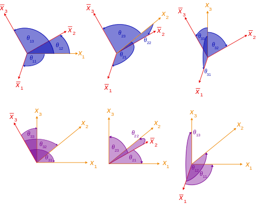 where θij and θji are the angles between the xi and xj axes. In general, θij is not equal to θji, because for example θ12 and θ21 are two different angles.