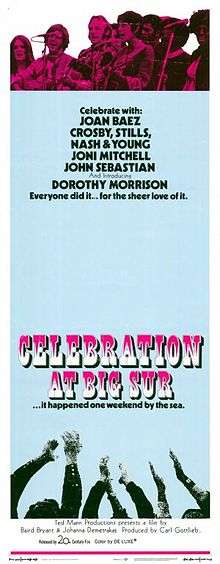Celebration at Big Sur (also known simply as Celebration) is a film of the 1969 Big Sur Folk Festival in Big Sur, California, featuring Crosby, Stills, Nash and Young (CSNY), Joan Baez, Joni Mitchell and others.