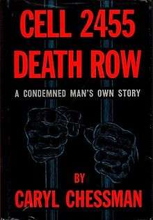 Cell 2455, Death Row: A Condemned Man's Own Story is a 1954 memoir that is the first of four books written on death row by convicted robber, rapist and kidnapper Caryl Chessman (27 May 1921 – 2 May 1960). Sentenced to death in 1948 under California's Little Lindbergh Law, Chessman became internationally famous for waging a legal battle to stay alive and fight his conviction and death sentence through voluminous appeals. Chessman became a cause célèbre for the movement to ban capital punishment. Before he was executed in 1960, he was the longest-lived death row inmate in history.