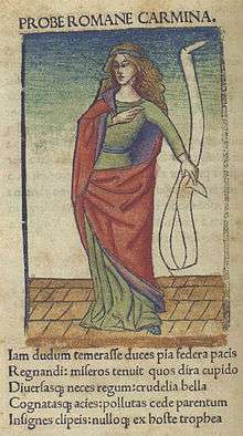Despite these criticisms, Roman Emperor Arcadius (AD 395–408) received a copy of the poem, and his version contains a fifteen line dedication noting that Proba's work is "Maro changed for the better in a sacred meaning” (Maronem mutatum in melius divino [...] sensu).[56] It was also presented to Aelia Eudocia, the wife of Emperor Theodosius II (AD 408–450).[57] During Late Antiquity, Archbishop Isidore of Seville (AD 560–636) wrote highly of Proba, calling her the “only woman among the men of the church” (Proba [...] femina inter viros ecclesiasticos [...] posita sola), and while he argued that the work was not worth much praise, her ingenuity in regards to its creation indeed was (Cuius quidem non miramur studium sed laudamus ingenium).[58][59] In the Middle Ages, Proba and her work would go on to be praised as examples of learnedness. Petrarch implicitly referenced De laudibus Christi in a letter discussing female geniuses, and in AD 1374 Giovanni Boccaccio included Proba on his list of famous women.[60] In AD 1472, the poem was first printed; this means that Faltonia Betitia Proba may very well have been the first female author to have her work duplicated via the printing press.[61]