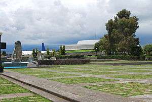 The complex is located on part of the former San José de la Pila Hacienda, which was originally part of a Franciscan monastery called Nuestra Señora de la Asunción.[1] This hacienda was one of the largest in the Valley of Toluca with large pasture for cattle and a fresh water spring which only recently has been open to the public. The hacienda came into the hands of the state in 1976. Part of the land, 177,989 hectares, was dedicated to the cultural center.[2] The main architect of the project was Pedro Ramírez Vázquez, who designed the museums.[4] The center was inaugurated in 1987 the three major museums and a collection of art and cultural objects donated by regional centers, museums, libraries, arts festival and individual families.[1] Much of the grounds remain open and contain some of the original hacienda buildings along with about seventy sculptures of iron, bronze and wood.[2][3]