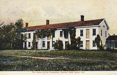The Upper Midwest was not immune to the Fourierist hubbub that had begun to percolate in the United States in 1843. In the fall of that year the Franklin Lyceum of Southport (today known as Kenosha) began taking up discussion of Fourier's ideas in a series of public discussions.[8] On November 21 the society debated the proposition "Does the system of Fourier present a practicable plan for such a reorganization of society as will guard against our present social ills?"[9] After a week's pause, two more successive weekly meetings of the lyceum were dedicated to the Fourier program.[9]
