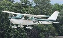 The Cessna 172 Skyhawk is a four-seat, single-engine, high wing, fixed-wing aircraft made by the Cessna Aircraft Company.[5] First flown in 1955,[5] more Cessna 172s have been built than any other aircraft.[6]