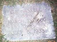 Haskell entered the oil business after finishing his term as governor,[5] a profession he would stay in until the end of his life. In 1933, Haskell suffered a major stroke, from which he would never recover. Three months later Haskell would die from pneumonia. Haskell lost consciousness on July 4, and died the next day, in the Skirvin Hotel in Oklahoma City at the age of 73. He is buried in Muskogee, Oklahoma.[5]