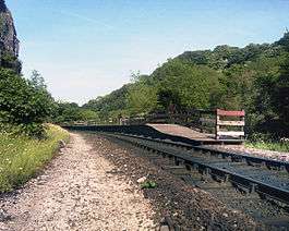 Chee Dale Halt railway station was a timber-built railway halt located on the Peak Forest Junction to Buxton Junction spur of a triangle of the former Midland Railway lines at Blackwell Mill. The halt was opened on 5 July 1987 by British Rail and used for a summer Sundays-only passenger service promoted by Peak Rail that ran between Edale railway station and Chee Dale, and closed on the 13 September 1987.