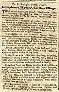 In about 1855 John Thornely (sometimes spelt Thornley) purchased the property.[5] John Thornely (1803-1857) was born in 1803 Glossop, Derbyshire. He was the only son of John Thornely (1777-1849) who owned Dodworth Hall in Yorkshire.[6] In 1840 he married Elizabeth Cockle but the couple had no children. John died in 1858 and Elizabeth continued to live at the house until her death in 1864.[7] As they had no heirs the property was inherited by a distant relative Mary Thornley Ollivant (1835-1876) who had married William Dugdale (1839-1896) two years earlier[8] and so the property was brought into the Dugdale family. William Dugdale owned Simonstone Hall so the house was rented for many years. The rental notice of 1865 is shown. Lieutenant Colonel Robert Cumming (1822-1905) and his wife Anna Maria were the first tenants. They were followed by Jane Crawshay Gwynne (1809-1900) who was the widow of Colonel Alban Lewis Thomas Jones Gwynne of Aberaeron in Wales. She moved to the house in about 1880 with her two daughters Agnes and Edith. A picture of Agnes is shown.