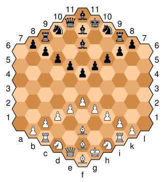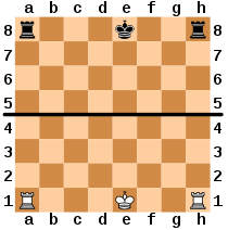 Initial position, first row: rook, knight, bishop, queen, king, bishop, knight, and rook; second row: pawns