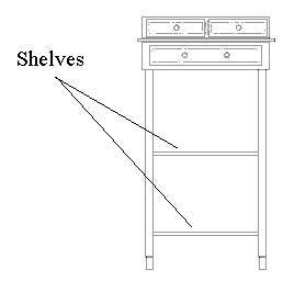 Other variants of the Cheveret are much taller and have one or two shelves built between the legs, under the main drawer. They are meant to be used standing up, being then a form of standing desk.