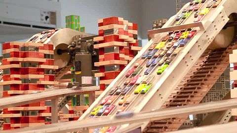 In the summer of 2011, Burden finished his kinetic sculpture, Metropolis II,[32][33] which took four years to build. It was installed at LACMA in Fall 2011.[34][35] "Chris Burden's Metropolis II is an intense kinetic sculpture, modeled after a fast paced, frenetic modern city."[36]