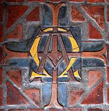 Immediately inside the front doors are the letters S and J for Saint James. The large symbol in the center contains the first and last letters of the Greek alphabet, Alpha and Omega, signifying that God is the beginning and the end of all things.