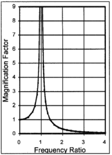 An estimation of the magnification factor for a system with one degree of freedom may be gained using:[12]
