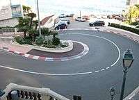 The lap starts with a short sprint up Boulevard Albert Ier, to the tight Sainte-Dévote corner. This is a nearly 90-degree right-hand bend usually taken in first or second gear.[5] This corner has seen many first lap accidents, although these are less common since the removal of the mini roundabout on the apex of the corner before the 2003 event, making the entrance to the corner wider. The cars then head uphill along Avenue d'Ostende, before changing down for the long left-hander at Massenet. The maximum gradient in this part of the circuit is around 12%.
