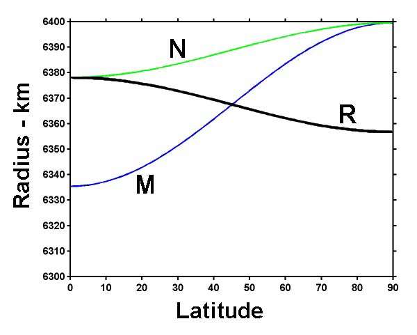 In particular, the Earth's radius of curvature in the (north–south) meridian at φ is:
