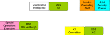 During the Second World War, the United States Office of Strategic Services (OSS; the predecessor to the Central Intelligence Agency and to part of United States Army Special Forces) worked closely with the British Secret Intelligence Service (SIS), Special Operations Executive (SOE), and Political Warfare Executive (PWE). The latter two organizations were wartime, and their functions were merged back into SIS after the war.