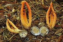 - ↑ Farlow WG (1890). "Poisonous action of Clathrus columnatus". Botanical Gazette. 15 (2): 45–46. doi:10.1086/326497.
