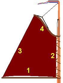 Each of the corners on a quadrilateral fore-and-aft rigged sails has its own name: