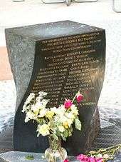 While most fire stations in Manhattan lost firefighters in the September 11, 2001, terrorist attacks, the station with the greatest loss of firefighters was Engine 54, Ladder 4, Battalion 9 at 48th Street and Eighth Avenue, which lost 15 firefighters.[47] Given its proximity to Midtown, the station has specialized in skyscraper fires and rescues; in 2007, it was the second-busiest firehouse in New York City, with 9,685 runs between the two companies.[48] Its patch reads "Pride of Midtown" and "Never Missed a Performance". Memorials dot the station's exterior walls and a granite memorial is in a park to its north. Ladder 21, the "Pride of Hell's Kitchen", located on 38th Street between Ninth and Tenth Avenues, and stationed with Engine 34, lost seven firefighters on September 11.[49] In addition, on September 11, Engine 26 was temporarily stationed with Engine 34/Ladder 21 and lost many firefighters themselves.