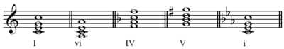 Another view of closely related is that there are six closely related keys, based on the tonic and the remaining triads of the diatonic scale, excluding the dissonant leading-tone diminished triad.[5] Four of which differ by one accidental, one with the same key signature, and the parallel modal form. In the key of C major these would be: D minor, E minor, F major, G major, A minor, and C minor.