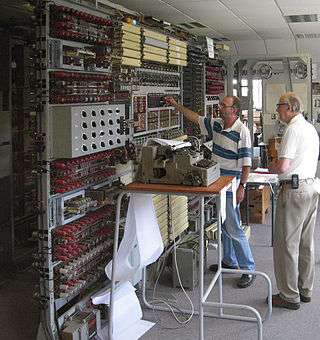 Colossus was a set of computers developed by British codebreakers in 1943-1945 to help in the cryptanalysis of the Lorenz cipher. Colossus used thermionic valves (vacuum tubes) to perform Boolean and counting operations. Colossus is thus regarded[2] as the world's first programmable, electronic, digital computer, although it was programmed by switches and plugs and not by a stored program.[3]