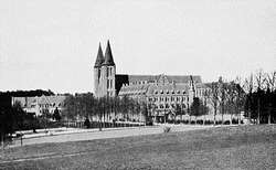 On his journey back to Ireland, he passed through Maredsous, Belgium – a young and dynamic monastery founded 9 years before (in 1872) by Benedictine monks from the Abbey of Beuron, Germany.[13] He wished very much to join the community there.[14] But his archbishop in Ireland refused his request to do so and appointed him as curate at Dundrum,[15] a parish in the south of Dublin. After a year, he was appointed Professor of Metaphysics at Holy Cross College at Clonliffe, the diocesan seminary for Dublin where Marmion himself had studied.[16] For the next four years (1882–1886) he embarked on the education and spiritual direction of others, including his appointment as chaplain to a nearby convent.[17]