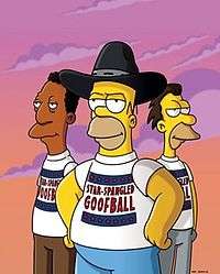 "Coming To Homerica" is the twenty-first episode and season finale of the twentieth season of The Simpsons. It originally aired on the Fox network in the United States on May 17, 2009. Its name is a parody of the 1988 film Coming to America.[1] The storyline is a pick on illegal immigration to the United States, complete with self-appointed vigilantes and building a fence to prevent it. Tying in with the episode's subject of Norwegian-descended settlers, its first US broadcast coincided with the Norwegian Constitution Day.