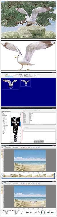 When starting a new project CAM software requests a user to fill in measurements, these will usually be of the wall which the frescography is later mounted to. Once the project has been created the user may choose from a library of images which are categorized into themes and motives. The library will either be filled with content by the user himself, or the user can purchase a CAM software which is already filled by the manufacturer, the Dreamworlds Design Studio.[2] The user creates designs by placing the motifs on the workspace. By giving the motifs layer attributes, it is possible to put image elements such as skies or oceans in the background and a beach or vegetation in the foreground. With additional options such as re-sizing and cropping individual motifs, a design gains depth and realistic proportions.