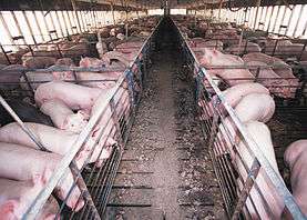 CAFO practices have raised concerns over animal welfare from an ethics standpoint. Some view such conditions as neglectful to basic animal welfare. Many people believe that the harm to animals before their slaughter should be addressed through public policy.[55] Laws regarding animal welfare in CAFOs have already been passed in the United States. For instance, in 2002, the state of Florida passed an amendment to the state's constitution banning the confinement of pregnant pigs in gestation crates.[56] As a source for comparison, several countries including Germany, Sweden, and Austria have all prohibited the use of battery cages for egg-laying hens and battery cage breeding methods will be completely outlawed in the European Union by 2012.[57]