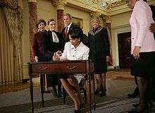 - ↑ Glenn Kessler (January 13, 2009). "Rice, Eager to Depart, Heartily Defends Record". The Washington Post. Retrieved January 19, 2009.