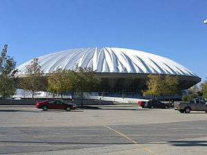The construction of State Farm Center, originally known as Assembly Hall, at the University of Illinois at Urbana–Champaign consisted of building a huge indoor arena with a 400-foot-diameter (120 m) concrete dome whose center height is 125 feet (38 m) above the center floor, and which weighs 10 million pounds.[1] The building is considered an engineering marvel because of the unique method used to build the concrete roof.[2] State Farm Center, the first-ever concrete dome arena, hosts the campus's teams in men's and women's basketball, numerous concerts and other events. It holds sentimental value for numerous alumni and fans alike and attracts attention for its design and construction.[3] The construction of the Assembly Hall was conceived to provide UIUC with needed space for ceremonies and athletic events. The university’s population had outgrown the largest building on campus at that time, the Auditorium (later rededicated Foellinger Auditorium), and desired one building that could hold the entire university class.[4] The design of the new building, by Max Abramovitz, called for the construction of one of the world’s largest edge-supported structure.[5] The assembly hall was completed in 1963, and was dedicated on Honors Day, Friday May 3.[5]