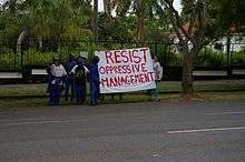 On Thursday, 2 February 2006, the four unions at UKZN (COMSA, NEHAWU, NTESU and UNSU) served notice to University Management that they would commence strike on Monday, 6 February 2006.[1] The immediate grievance was the sub-inflationary wage increases of the general staff while senior management were given bonuses.[1] However, the unions also cited the "corporatisation" of the university and the rise of an "authoritarian style of Management" as wider concerns.[1] The strike was timed with the first week of the academic year (registration week) in order to demonstrate seriousness.[1]