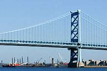 Former Riverside Prison (demolished) and Weeks Marine facilities seen beyond the Ben Franklin Bridge | |