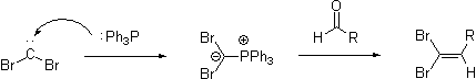 The Corey–Fuchs reaction is based on a special case of the Wittig Reaction, where the phosphorus ylide is formed from dibromocarbene. This carbene is generated in situ from the reaction of Triphenylphosphine and carbon tetrabromide.