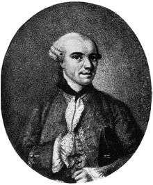 Born into a noble family, he studied law and met Voltaire in Berlin in 1750 and was taken on as his secretary in April 1752.[1] When Voltaire left the service of Frederick the Great Collini accompanied him, and was confined with him and Madame Denis on Frederick’s orders for three weeks in Frankfurt.[2] In 1755 the young Jean-Louis Wagnière was made his assistant, and just over a year later, took Collini's place when he was dismissed from Voltaire's service for insulting Madame Denis.[3]