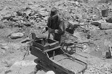 A rocker box (also known as a cradle) is a gold mining implement for separating alluvial placer gold from sand and gravel which was used in placer mining in the 19th century. It consists of a high-sided box, which is open on one end and on top,[1] and was placed on rockers.